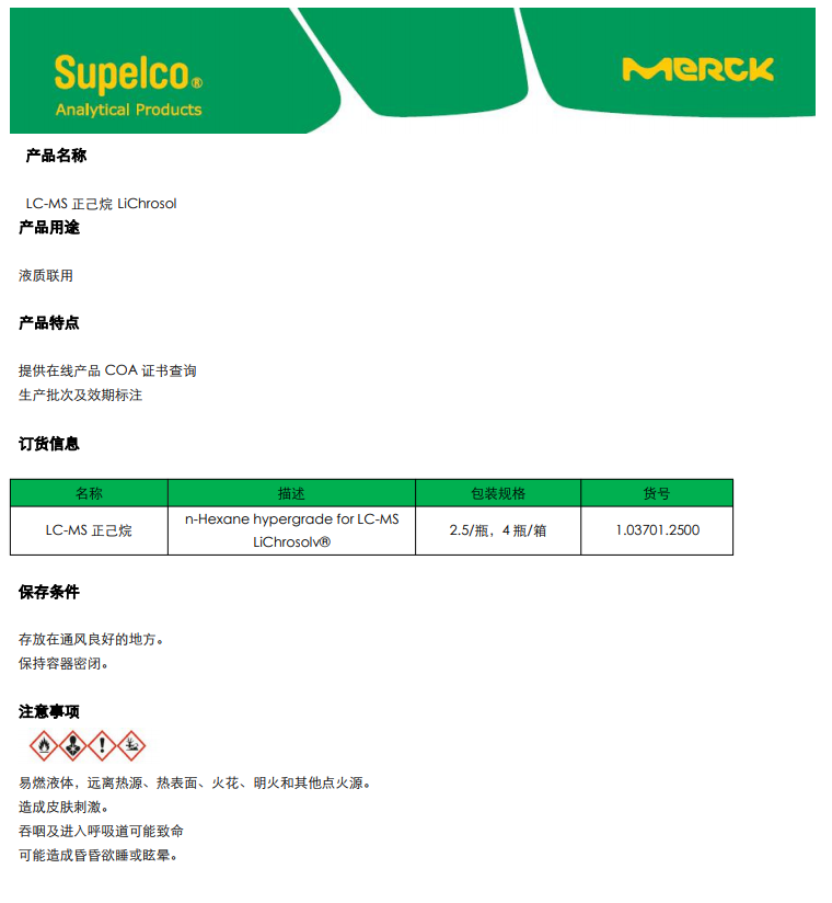 默克 LC-MS正己烷