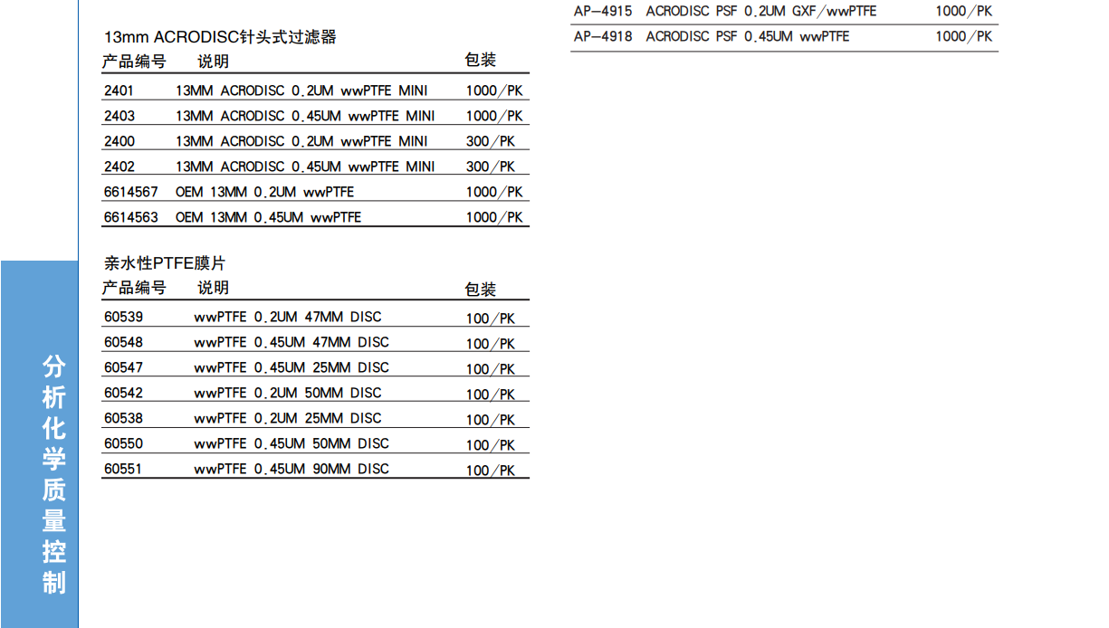规格:wwPTFE,13mm,0.45µm,1000个/盒