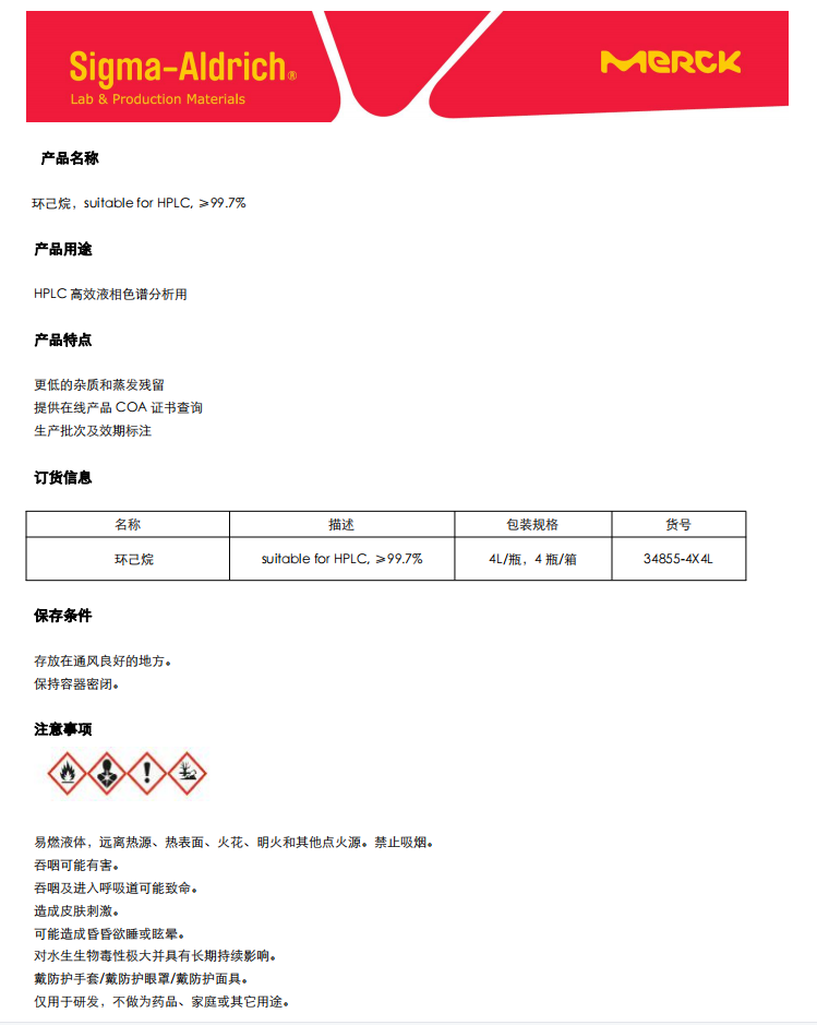 Sigma HPLC 环己烷