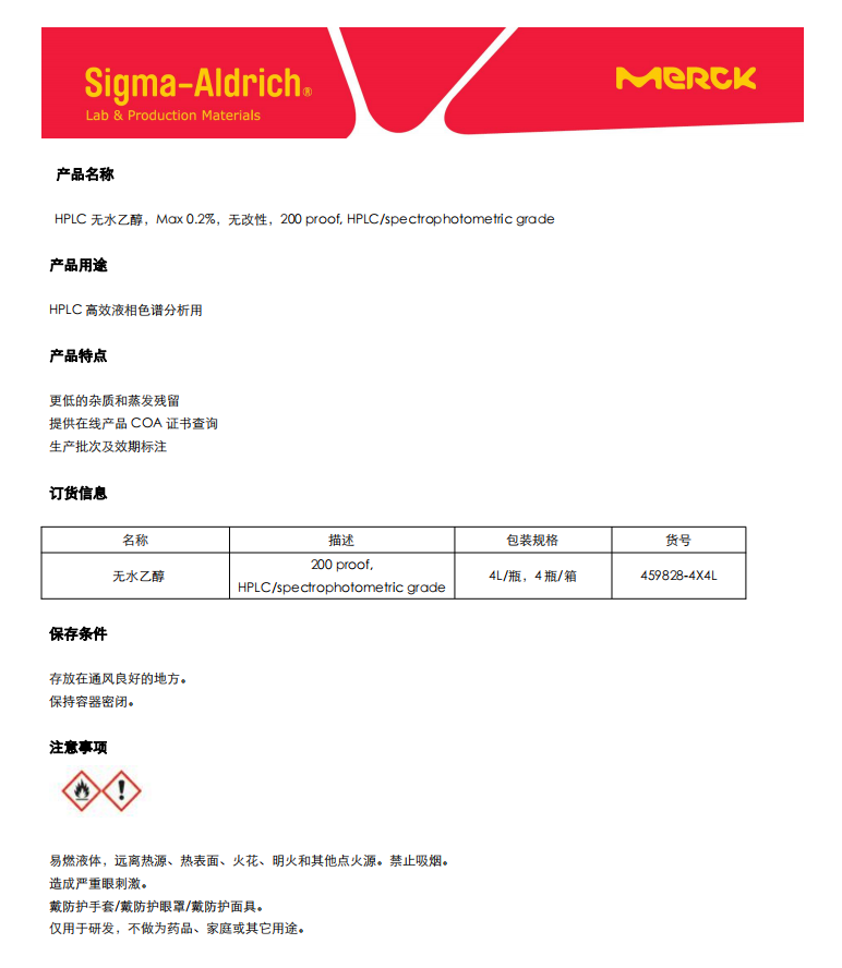 Sigma HPLC无水乙醇