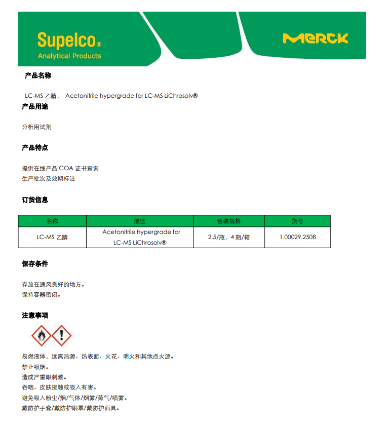 默克 LC-MS乙腈